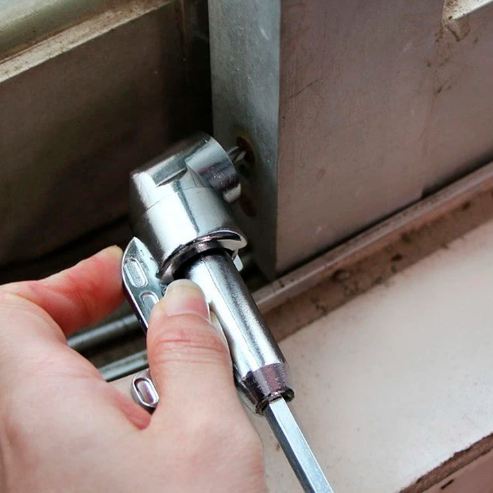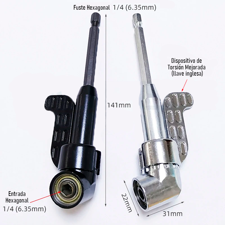 Su forma acodada permite usar un taladro o destornillador en ángulo sin esfuerzo, reduciendo el tiempo en instalaciones complejas. Es ideal tanto para uso profesional como doméstico, brindando comodidad en tareas de montaje o reparación.